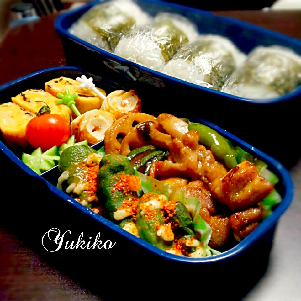 157🍱 豚肉とししとうの味噌炒め🐽🫑543さんのお弁当🐣。
