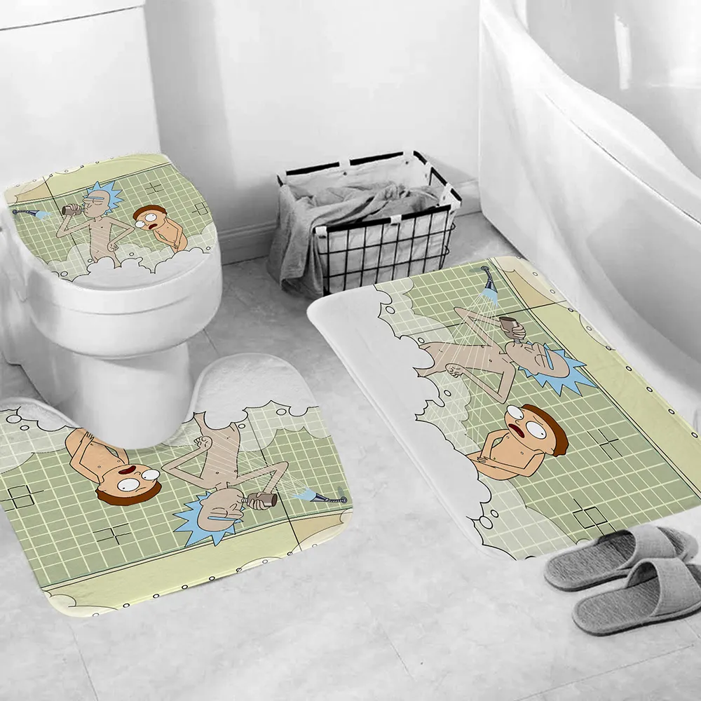 浴室セット シャワーカーテン バスマット トイレマット シャワーマット 4点セット ポリエステル 洗える 滑り止め モダン バスルーム 洗面所 快適4ピースの漫画面白い男の子のバスルームセット:防水シャワーカーテン、カーペットカバー、トイレカバー、バスマット。