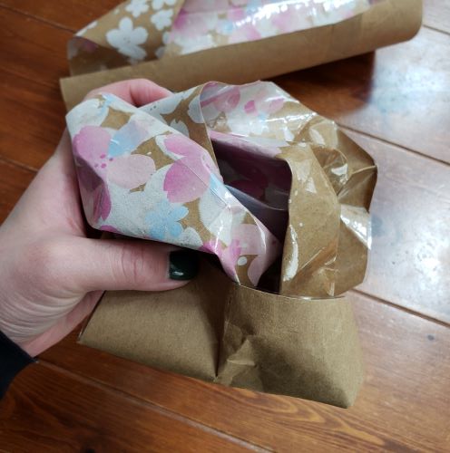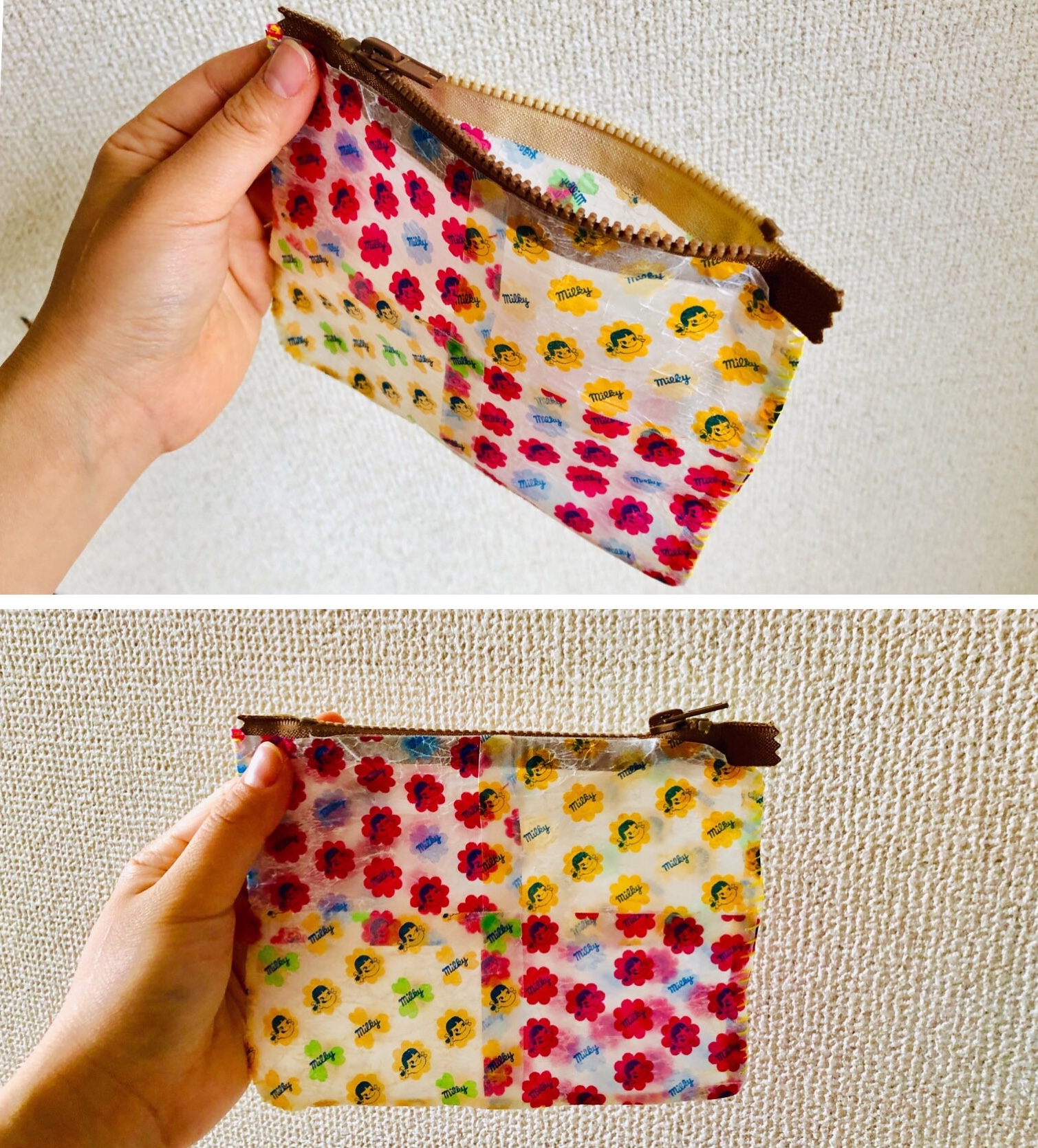 お菓子の袋をラミネート!かわいいポーチにアップサイクル。