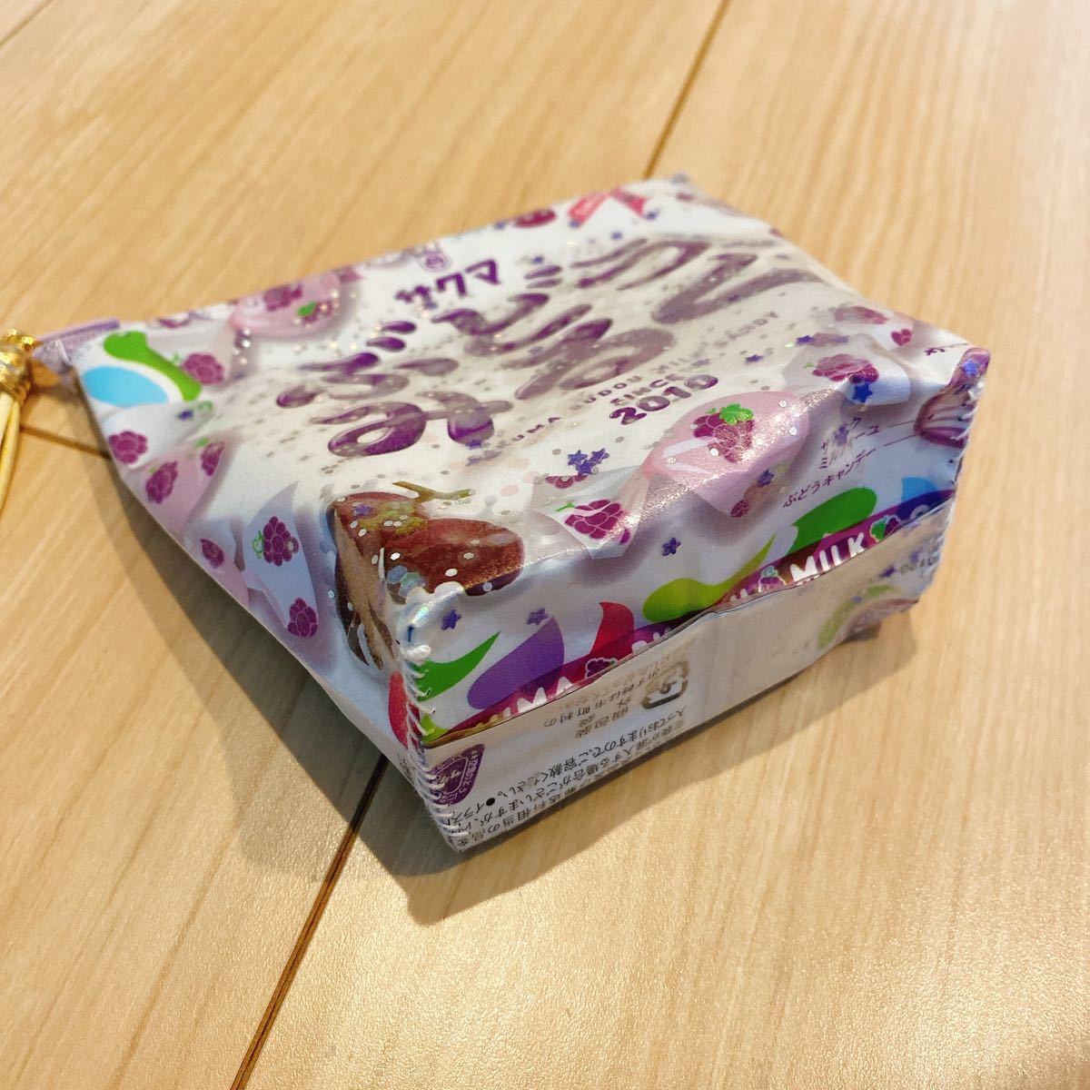 キラキラ加工♪お菓子袋リメイクマチ付きポーチパープルぶどうみるく。