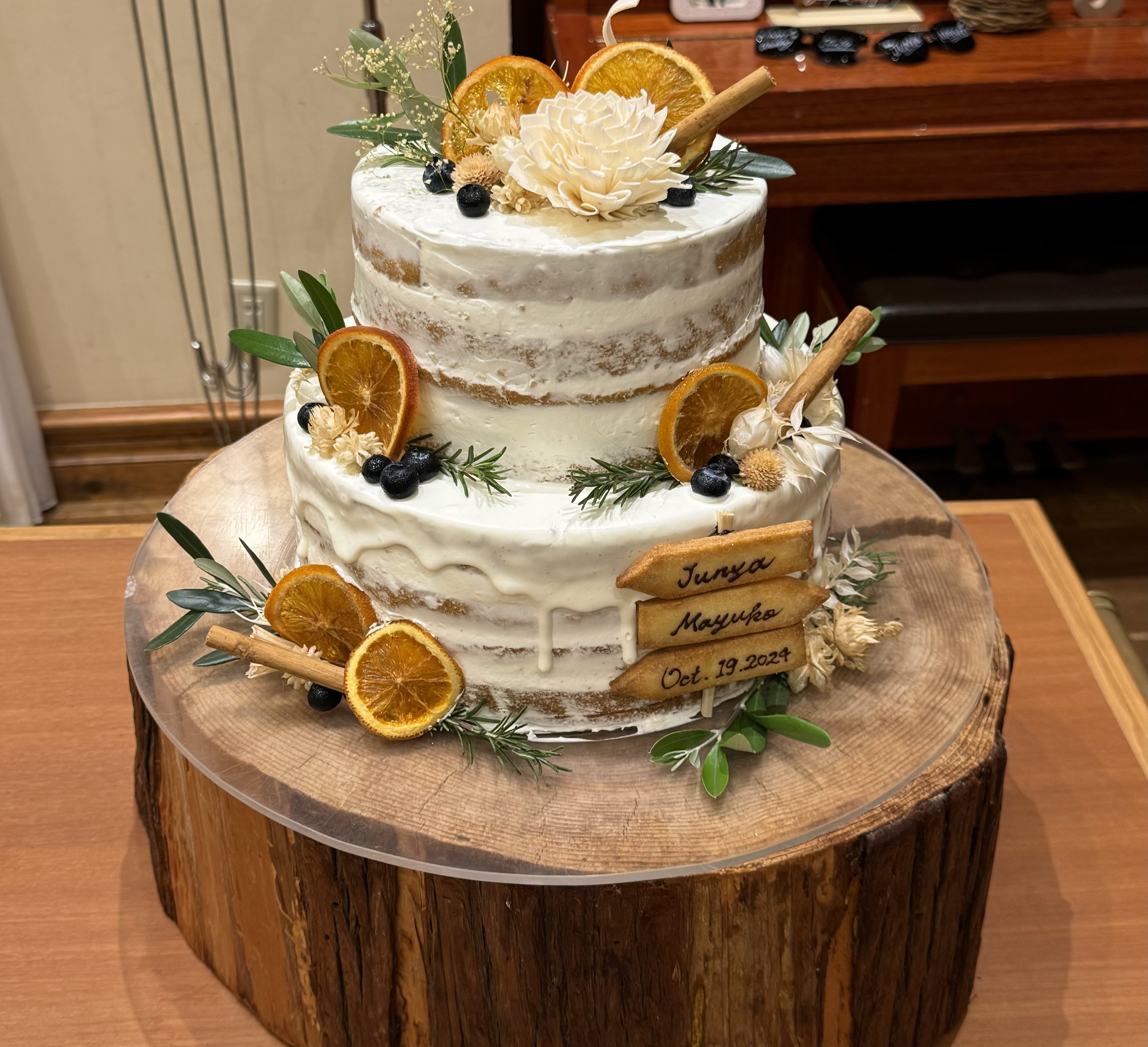 グランヒルズウエディング - ネイキッドケーキに ドライフルーツや🍊 アーモンドをのせてナチュラルに🌿 ホテルセンチュリー静岡センチュリー静岡センチュリーウェディングホテルウェディング静岡結婚式場静岡ウェディング静岡wedding静岡花嫁静岡。