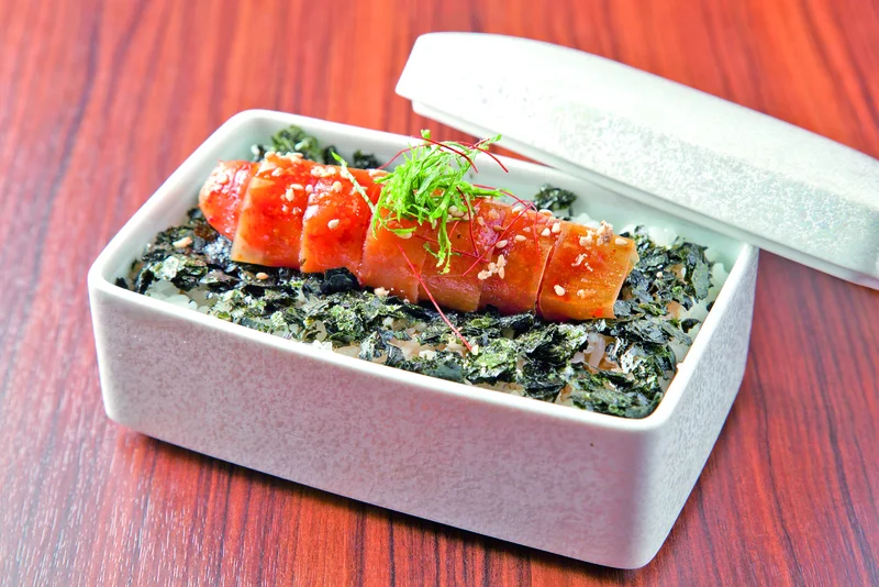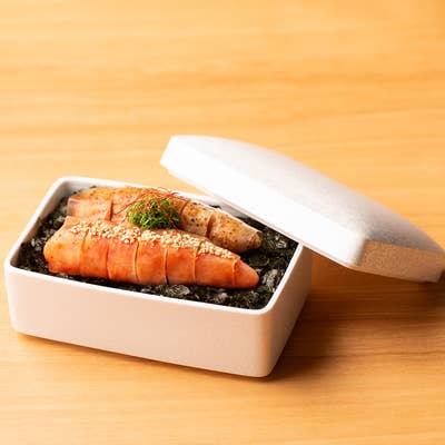 昆布で巻いためんたいこが丸々一本乗った「元祖博多めんたい重」のめんたい重 - 進化するめんたいこ㊦ 明太茶漬け、めんたい重 「すぐ食べ」に需要工場の観光施設化も - 写真・画像 1 5西日本新聞me。