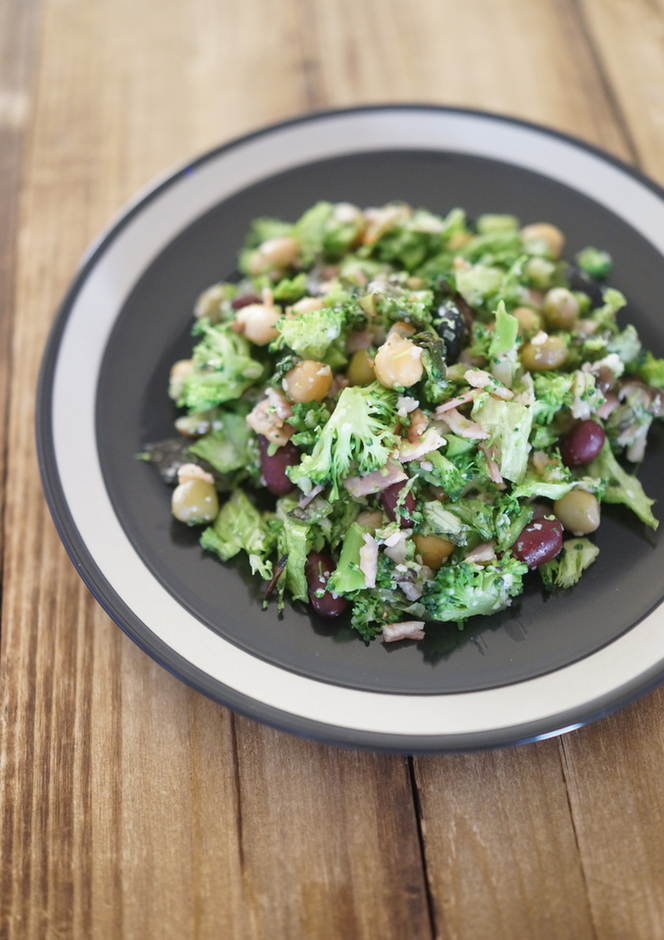 蒸しサラダ豆とベーコンのチョップドサラダ。
