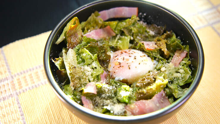 厚切りベーコンと半熟卵のサラダキユーピー3分クッキングCBCテレビ。
