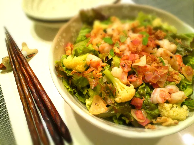 簡単♪カリカリベーコンとサニーレタスのサラダ。