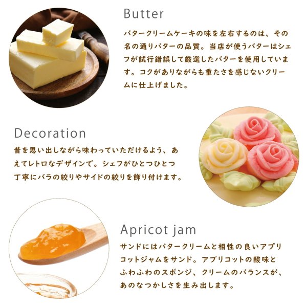 昔懐かしのレトロな味わい バタークリームケーキ5号サイズ15cm・4~5名様向き 「ホワイトデー」 母の日 バースデーケーキ!クリスマス☆「ホールケーキ」お誕生日ケーキ!-ロリアン洋菓子店 - プレゼント&ギフトのギフトモール。