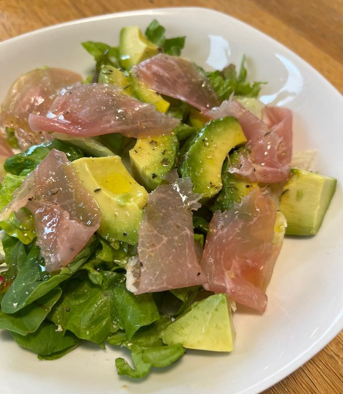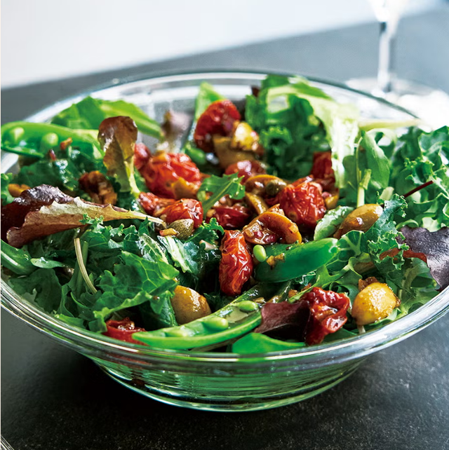 サラダのワンランク上の盛り付け方とは?色合いと皿が決め手、即実践できるコツをチェック食・料理オリーブオイルをひとまわし。