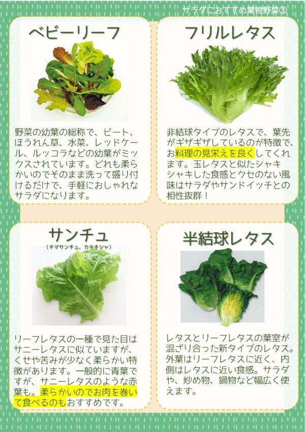 サラダにおすすめの葉物野菜 - 南あわじの野菜&レシピの紹介 - 南あわじ市ホームページ 食の拠点推進課。