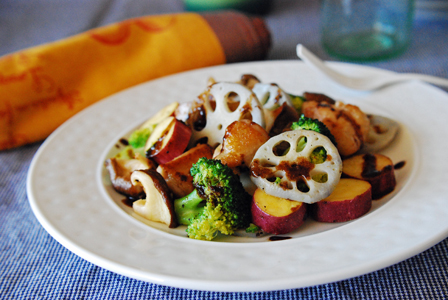 甘酸っぱい秋野菜のホットサラダ内堀醸造株式会社。