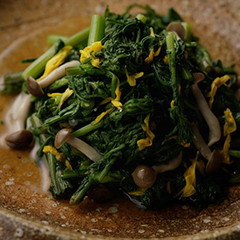 しめじと小松菜のぽん酢おひたしサンジルシ醸造株式会社。