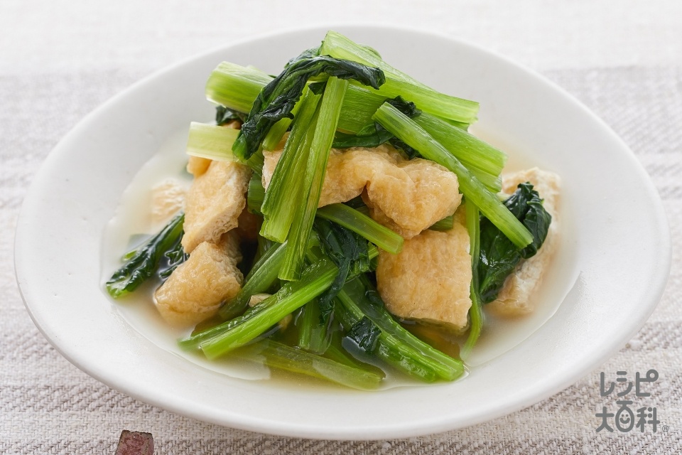 小松菜と油揚げのおひたし 白だしで味付け簡単!シャキッとした小松菜と出汁をすった油揚げがおいしい♪macaroni マカロニ。