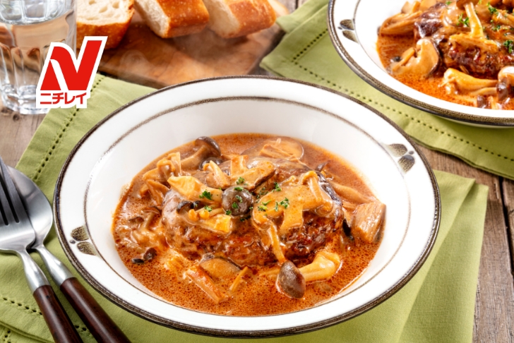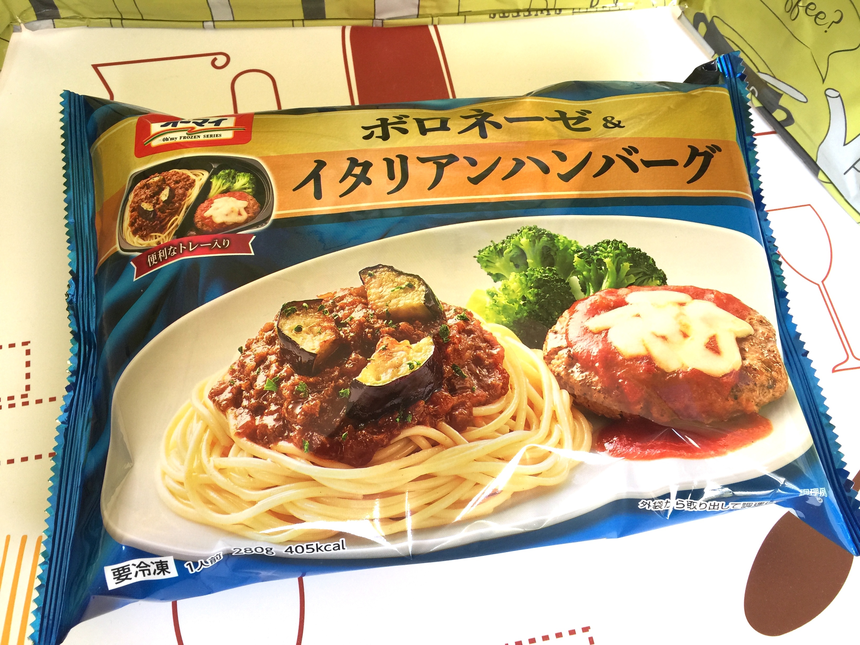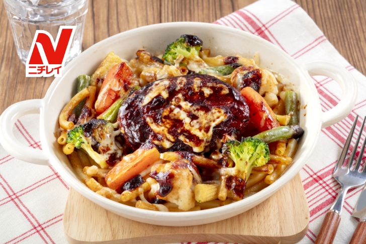ハンバーグdeボロネーゼパスタレシピ味の素冷凍食品。