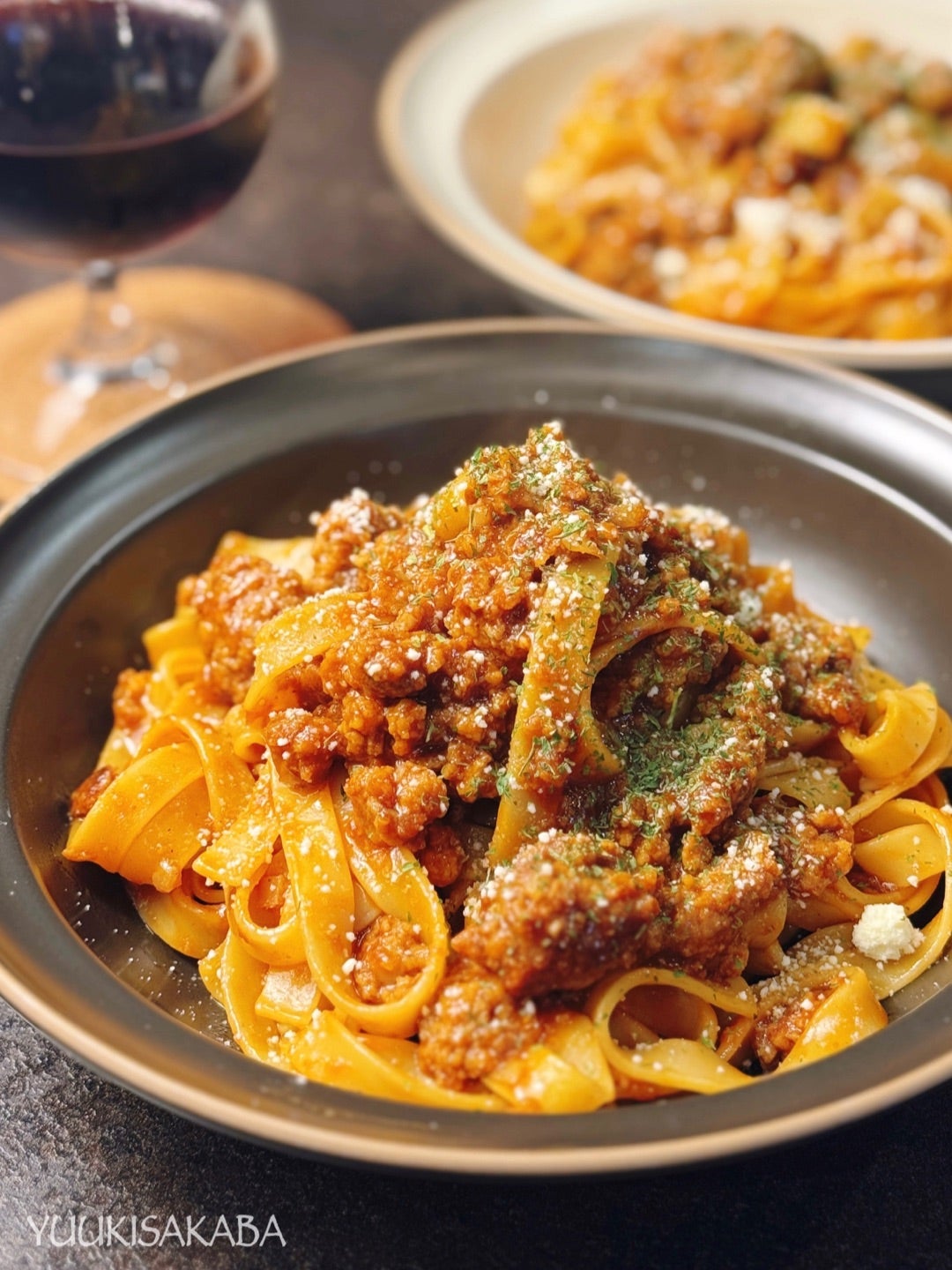 簡単ボロネーゼのフライパンパスタレシピ。