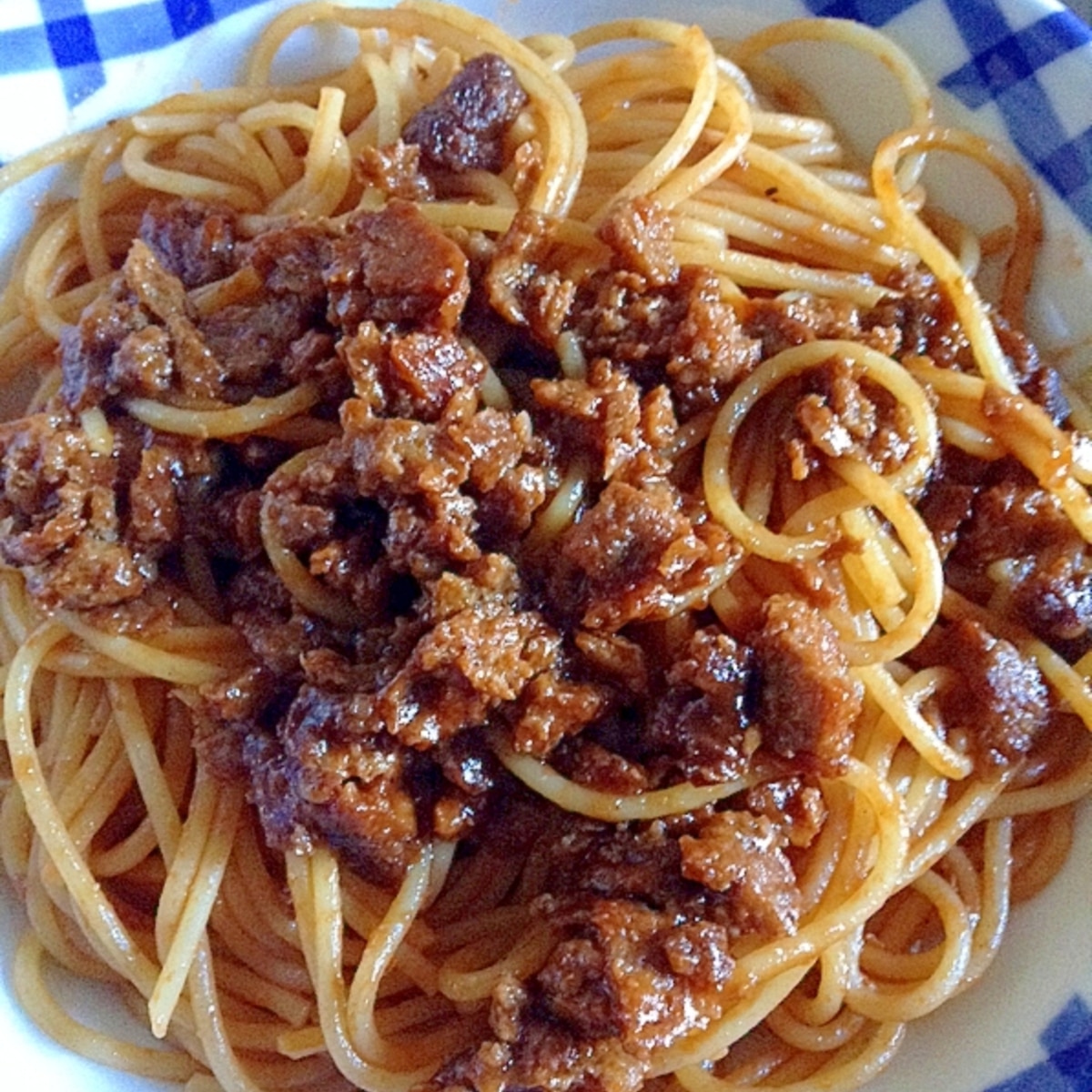 レトルトハンバーグでお手軽ボロネーゼ風スパゲティ。