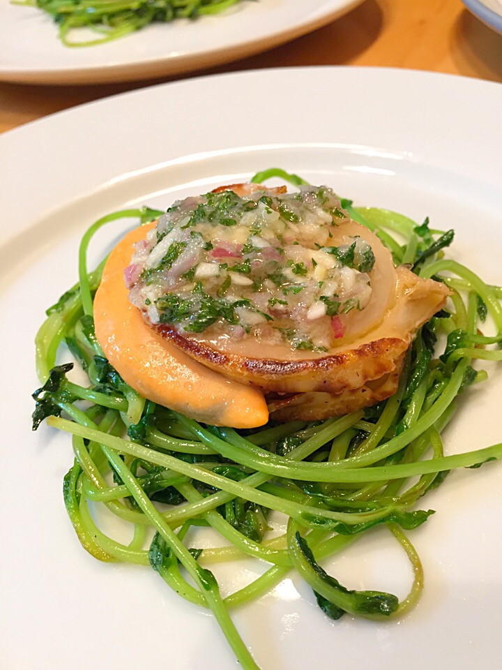 Superslow iegohan *お酒を飲みながらダイエット* -おうちのみ大使 ホタテのポワレと春野菜のカリカリエシャロット ソース。おうちでレストランのひと皿レシピ。