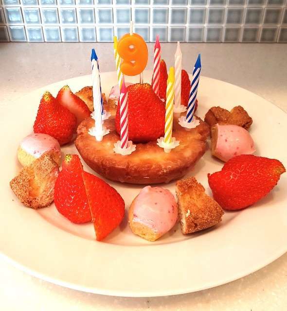 生クリームが嫌いな子供の誕生日ケーキ?ドーナツ&苺デコレーション - cafeオーナー、美味しいもの・旅行大好きママの目指せ! 得・楽・遊 ブログ。
