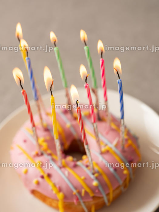 バースデーキャンドルの刺さったストロベリードーナツの写真素材209888428 毎月1点無料 フリー のストックフォト イメージマート。