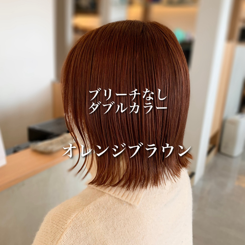オレンジブラウン🍊 ブリーチなしダブルカラーか1ブリーチで!☺︎ ブラウン味が秋冬にちょうどいい🍁暖色カラー、肌なじみのいいカラーに、こだわりを持ってさせていただきます! 色味がはっきり欲しい方、明るさが欲しい方は、 ブリーチなしダブルカラーがおすすめです。