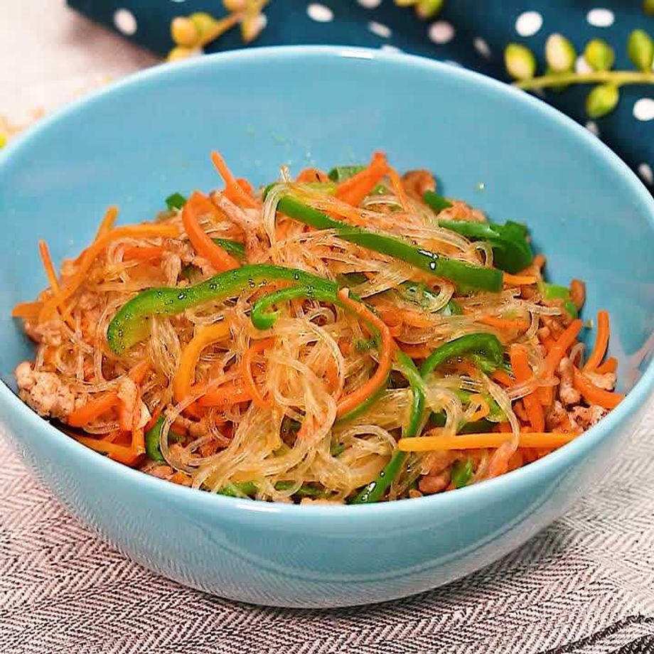 Mizuki ミズキ@料理研究家 على X: " レンジde6分!ピーマン春雨1.耐熱ボウルに 春雨60g、人参1 3本細切り、豚ひき肉100g、 ピーマン4個細切り の順に入れる。 2. 水150ml、醤油大1.5、砂糖・ごま油各大1 2、塩こしょう少々、にんにくチューブ2cm を混ぜてかけ。