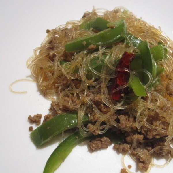 春雨とひき肉のピーマン炒めレシピ。