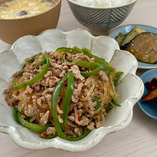 ごはんが進む!ひき肉とピーマンのピリ辛春雨。