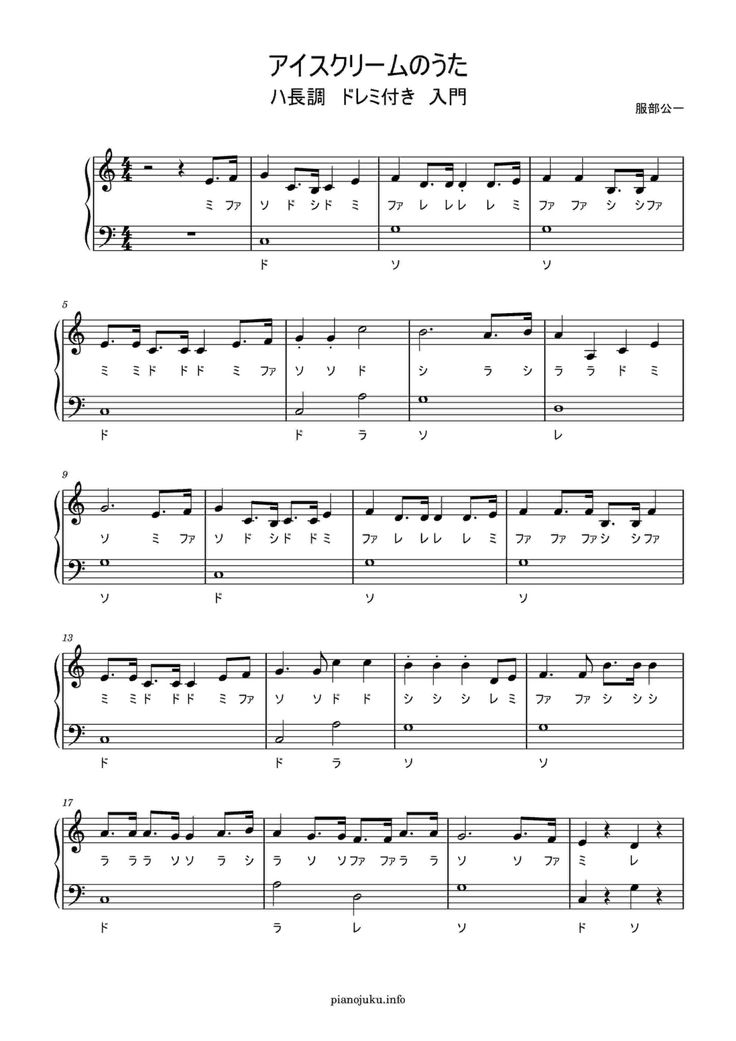 今すぐ使える無料楽譜 -アイスクリームのうた-難易度別全3楽譜ピアノ塾。