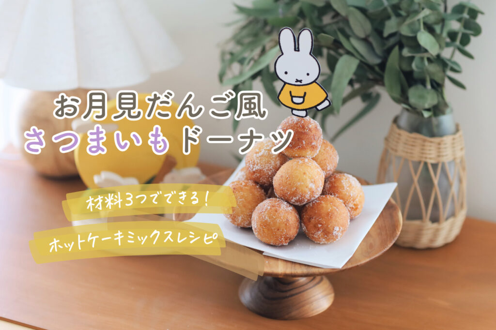 お月見だんご風!ホットケーキミックスで作る簡単もちもちさつまいもドーナツつづる。