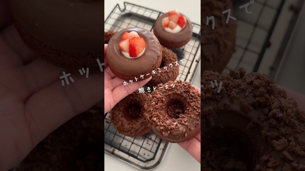 ホットケーキミックスで作る焼きドーナツと生ドーナツ」材料をどんどん混ぜて焼くだけ♡しっとり焼きドーナツのレシピだよ!チョリーナ チョコ島。