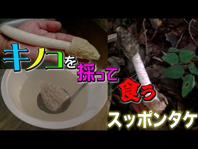 キノコを採って食う スッポンタケ - YouTube。