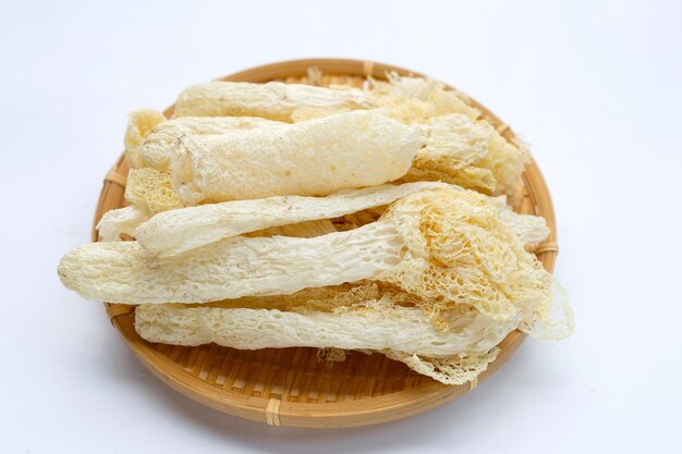 竹かごの中の乾燥した熱帯スッポンタケPremium写真。