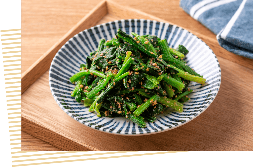 ほうれん草のゴマ和えお料理レシピ日本の心を造りつづけて140余年-本物の味、静岡醤油。