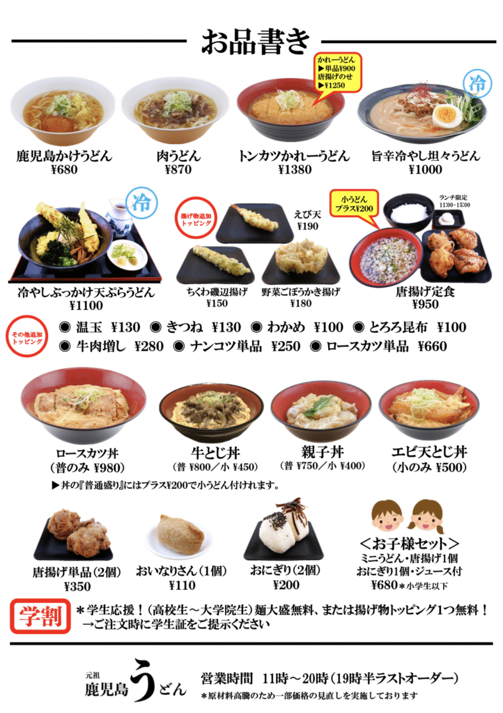 鹿児島 稲庭うどん メニュー (443 無料画像)