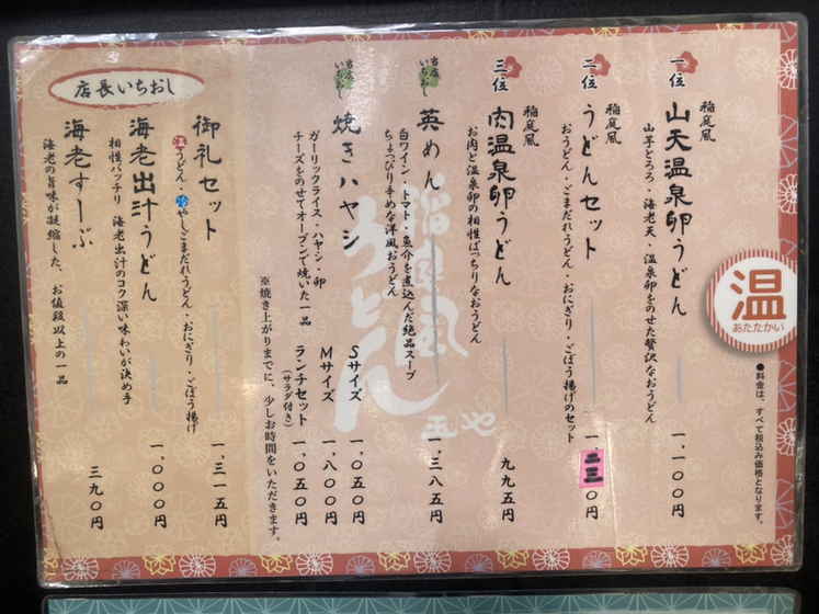 メニュー : 稲庭風うどん 玉や - 鹿児島市永吉 うどん店Yahoo!マップ。