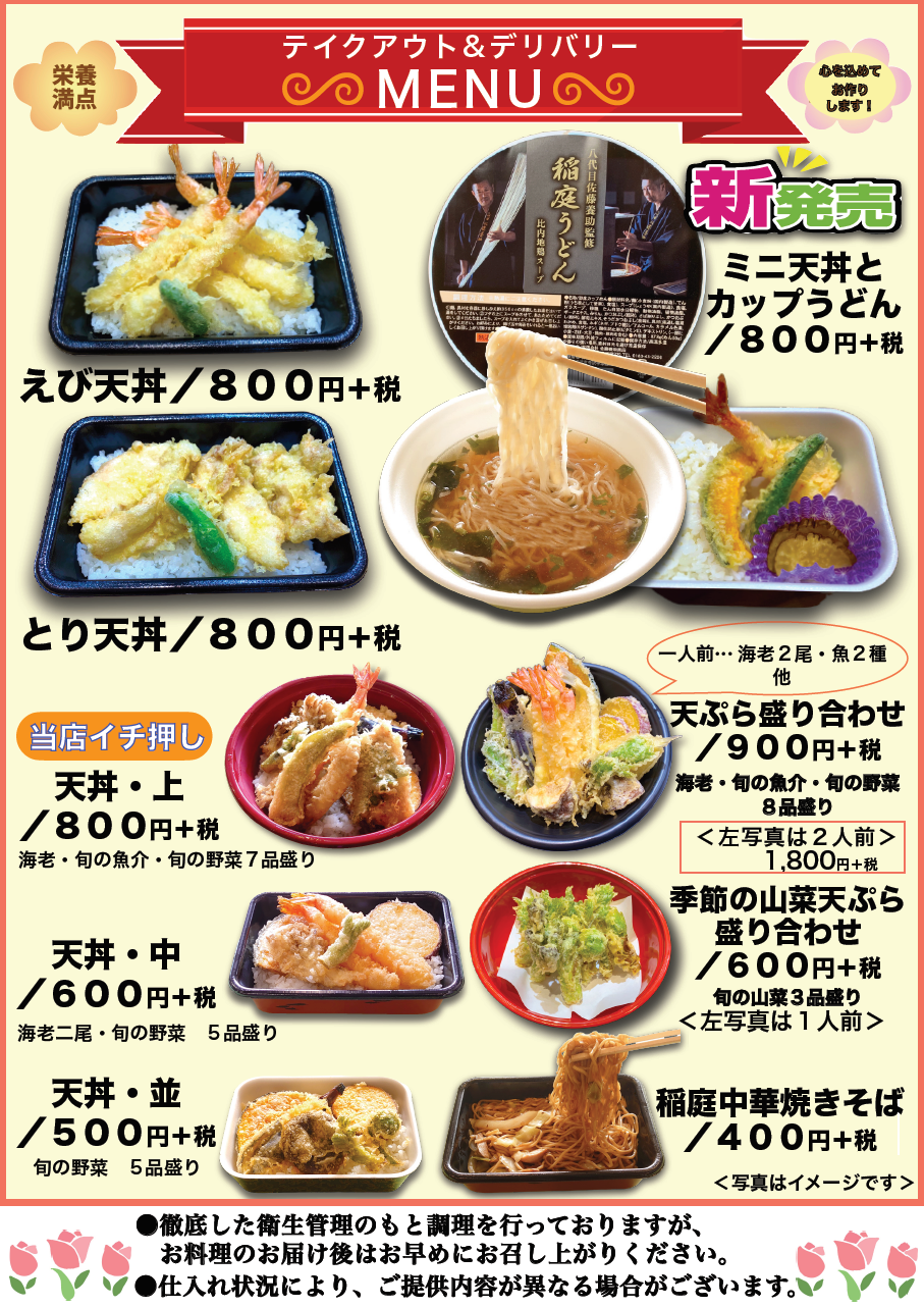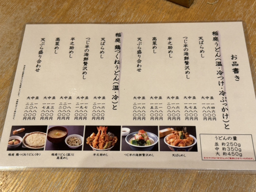稲庭うどん 葉月メニューうどんや天ぷらなどのセットやお飲み物、ランチなど。