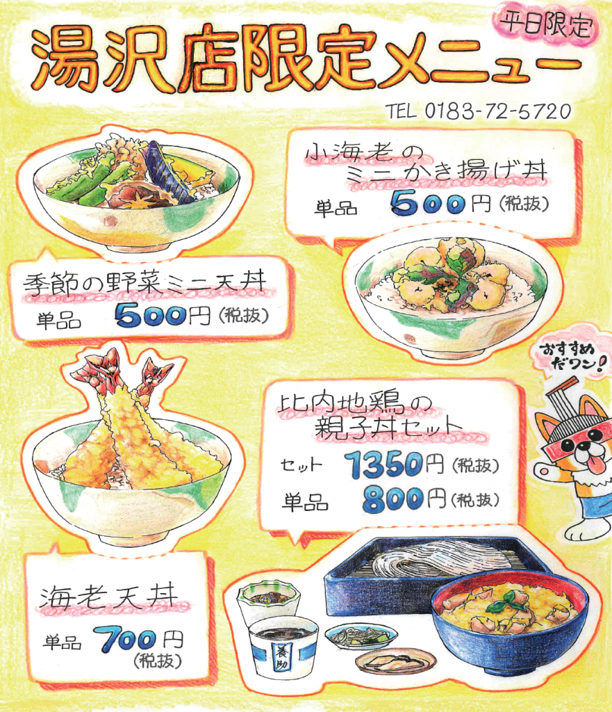 湯沢店平日限定メニュー稲庭うどん 佐藤養助商店。