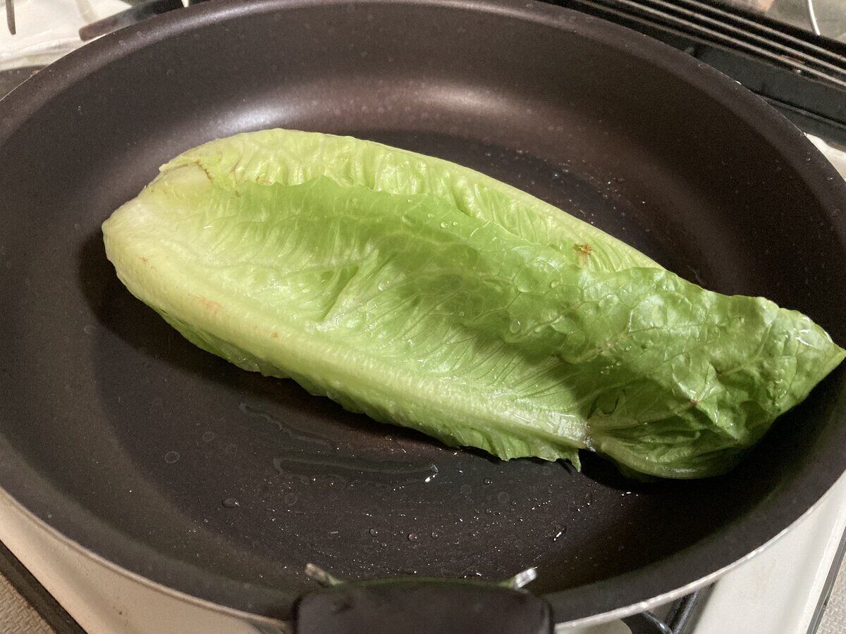今すぐロメインレタスをフライパンに放り込んでください料理レシピ。