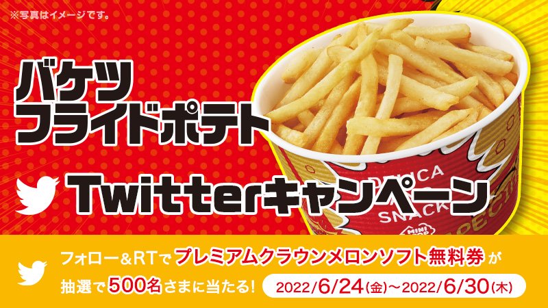 ミニストップ公式アカウント on X: "じゃじゃーん お待たせミミ~バケツポテト が期間限定で発売中☆ Xフライドポテトが3個分入ってなんと2個分の価格!これはおトク♪ 週末はバケツポテトをもぐもぐしながら、 おうち時間過ごすミミ~Xフライドポテト https:t.co。