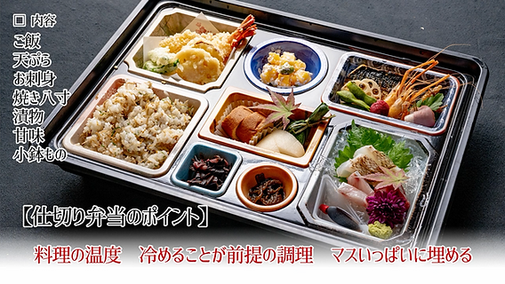板前修業仕出し弁当の盛り込み方 仕出し料理について 仕切り弁当箱の盛り込み 松花堂弁当の盛り込み方。