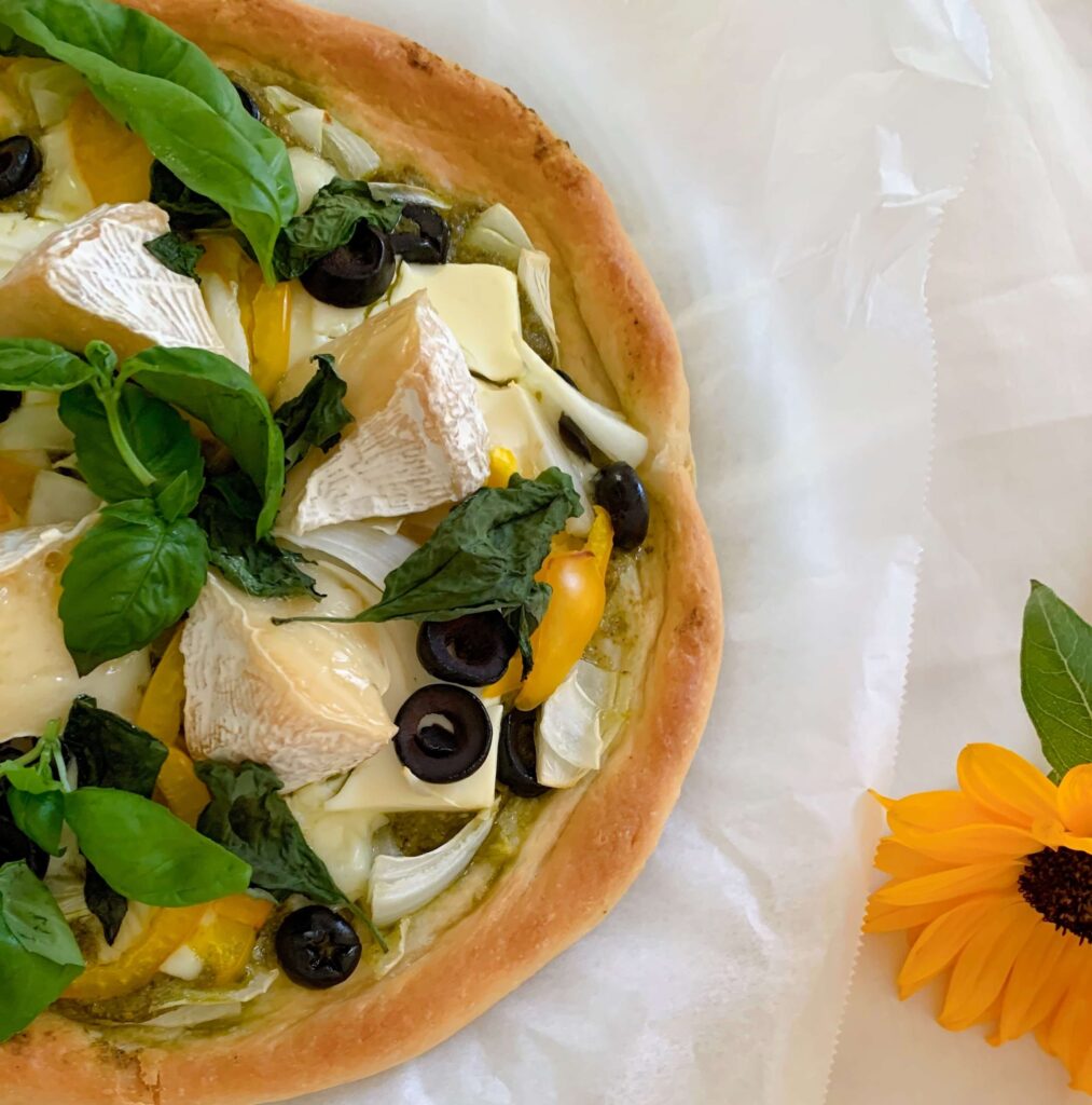バジルと黒オリーブのチーズピザはちみつレシピ 神戸養蜂場。