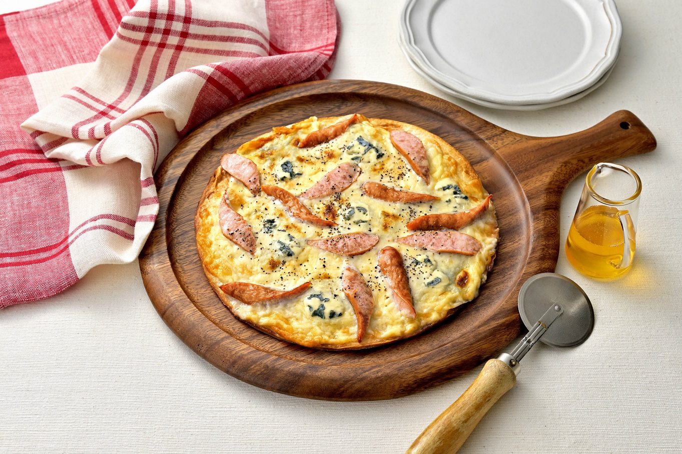 丸大食品レシピウインナーのブルーチーズピザ。