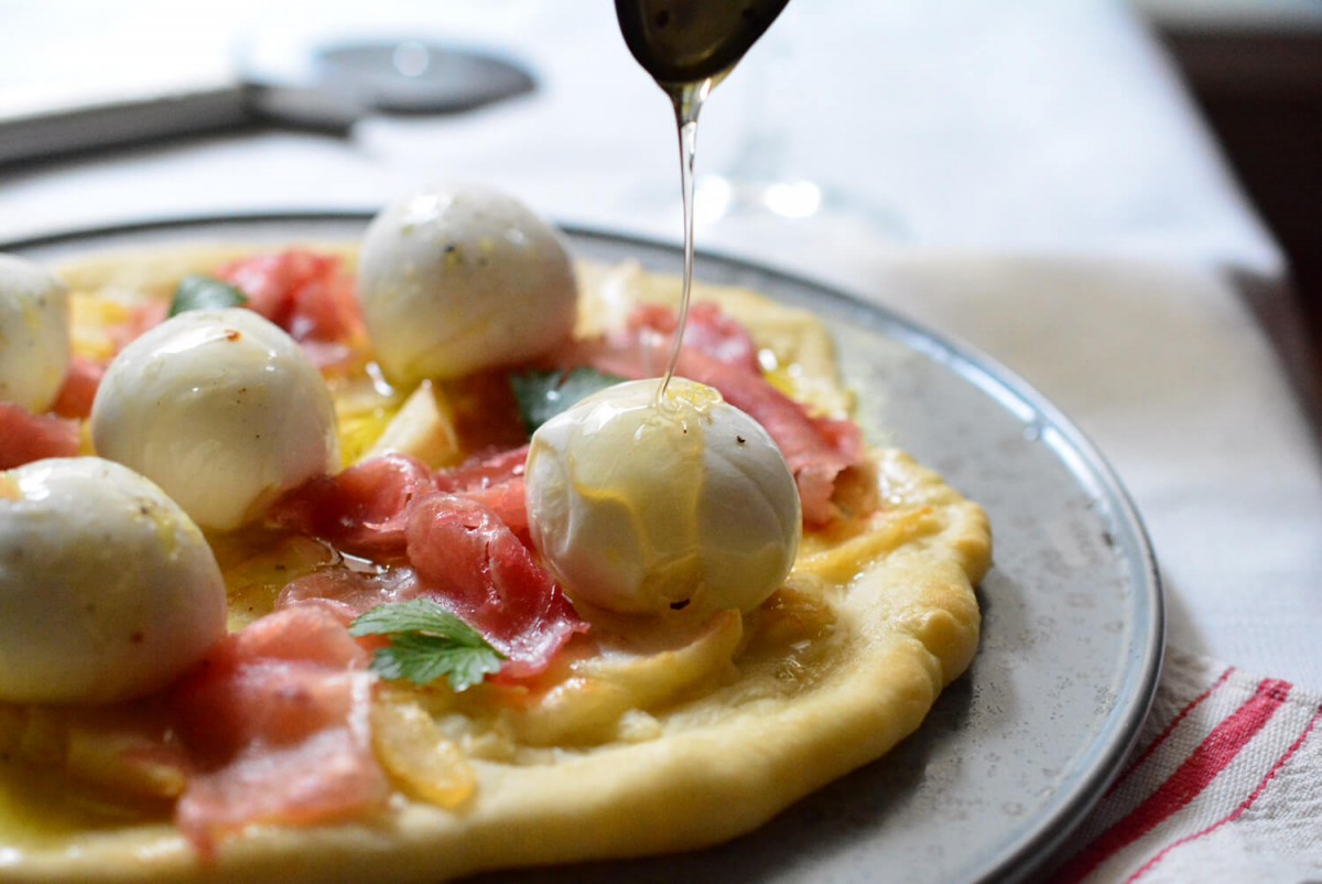 甘じょっぱさがクセになるクリームチーズハニーレモンピザ。