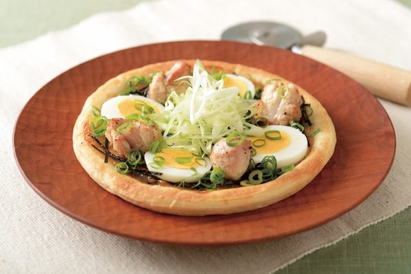 炙りチキンと玉子のてりやきチーズピザ。