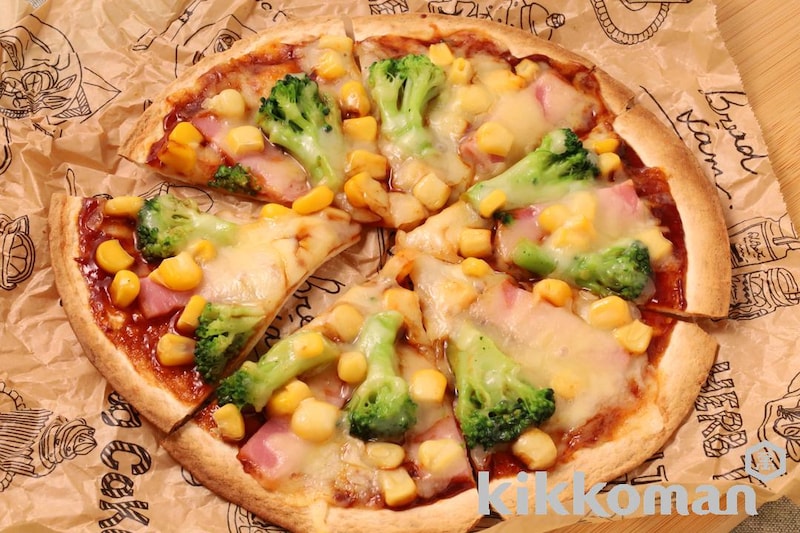 餅とれんこんのチーズピザレシピをさがすヤマサン食品工業株式会社。