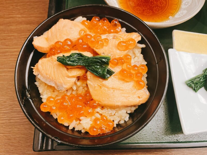 サケといくらがのった美味しい郷土料理😋 湖月亭のはらこ飯✨ おすすめですよ🤗。