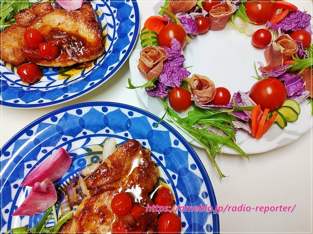 初めての「クリスマス リースサラダ」盛り付けいろいろ練習編♪さわあこのラジオ日記。