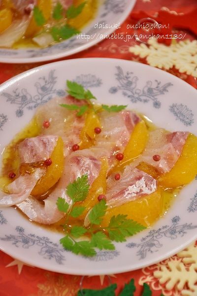 鯛とオレンジのカルパッチョだいすき!おうちごはん。