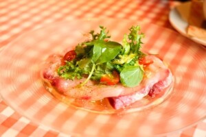 真鯛のカルパッチョ〜バルサミコソース仕立て〜フードコーディネーターによる「クッキングアートサイト美膳」。