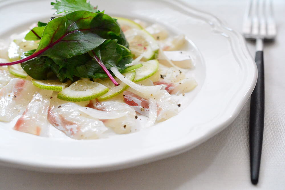 ホワイトバルサミコ酢の鯛のカルパッチョ - イタリア食材ベリッシモ MAGAZINE。