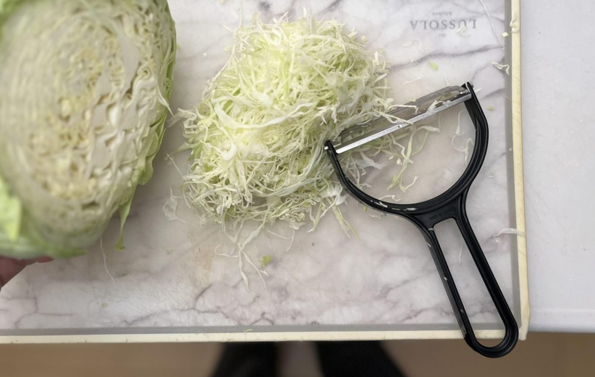 ダイソーのキャベツピーラー100均の千切りスライサーが便利。