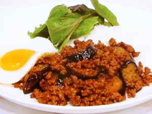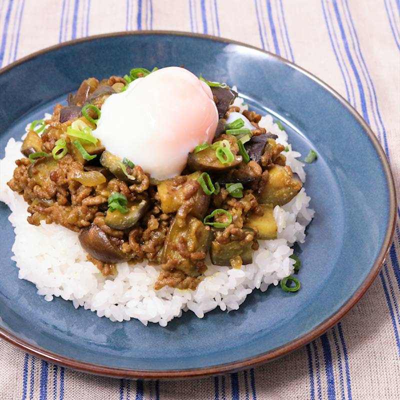ごろっとナスのボロネーゼ丼。